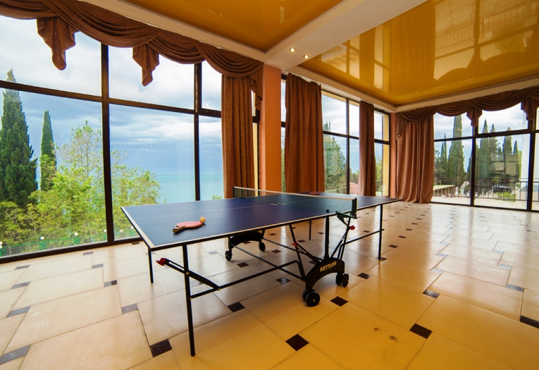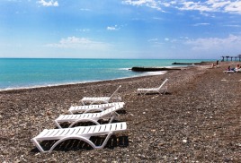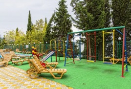 Пляж: песчано-галечный, оборудованный, в 150 м от пансионата. К пляжу можно спуститься по лифту, далее по небольшому подземному переходу. Услуги на пляже: лежаки, душ, навесы от солнца, кафе на большой открытой террасе.