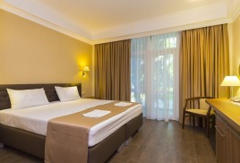 - 2-местный 1-комнатный Студия без балкона. Площадь: 25 кв.м. В номере: две односпальные кровати или одна двуспальная кровать, кондиционер, телевизор, холодильник, чайник с набором посуды, сейф, санузел с душем, фен. Номер бел балкона с видом на море. Дополнительное место - кресло-кровать.