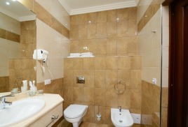 - 2-местный 1-комнатный Полулюкс Площадь: 14 кв.м. В номере: две односпальные кровати или одна двуспальная кровать, кондиционер, телевизор, холодильник, чайник с набором посуды, санузел с душем, фен. Балкон с видом на парковую зону (фонтан).