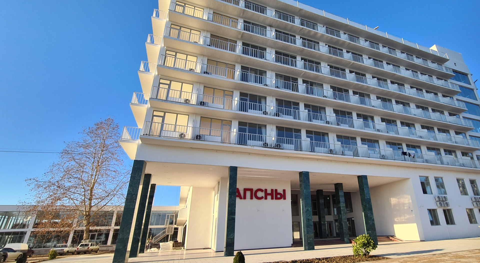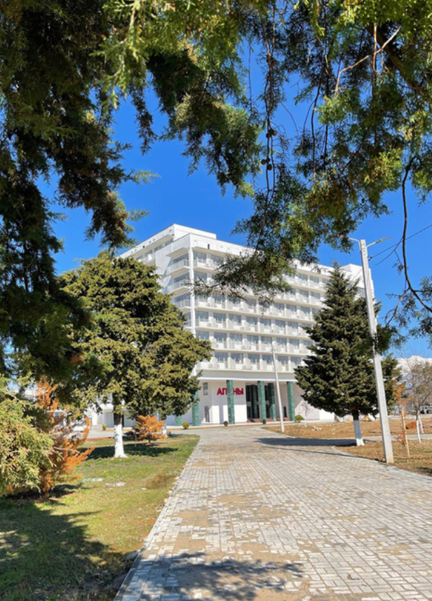 Гостиница «Апсны» расположена на Черноморском побережье в абхазском городе Гудаута. В 5 минутах езды — центр города, кафе, магазины, рестораны. Дорога до российской границы займет около часа, международный аэропорт Адлера находится в 80 километрах. Гостиница занимает благоустроенную территорию в 3 гектара.