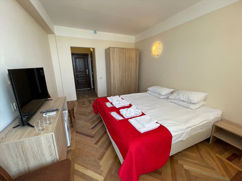 - 2-местный 1-комнатный Стандарт TWIN. Площадь: 20 кв.м. В номере: две односпальные кровати или одна двуспальная кровать, кондиционер, телевизор, холодильник, санузел с душем, балкон. Доп. место - раскладушка.