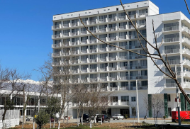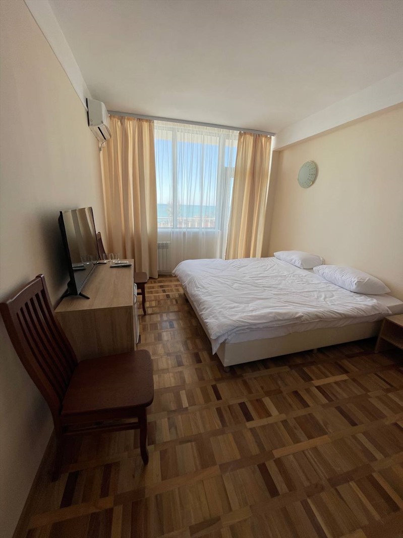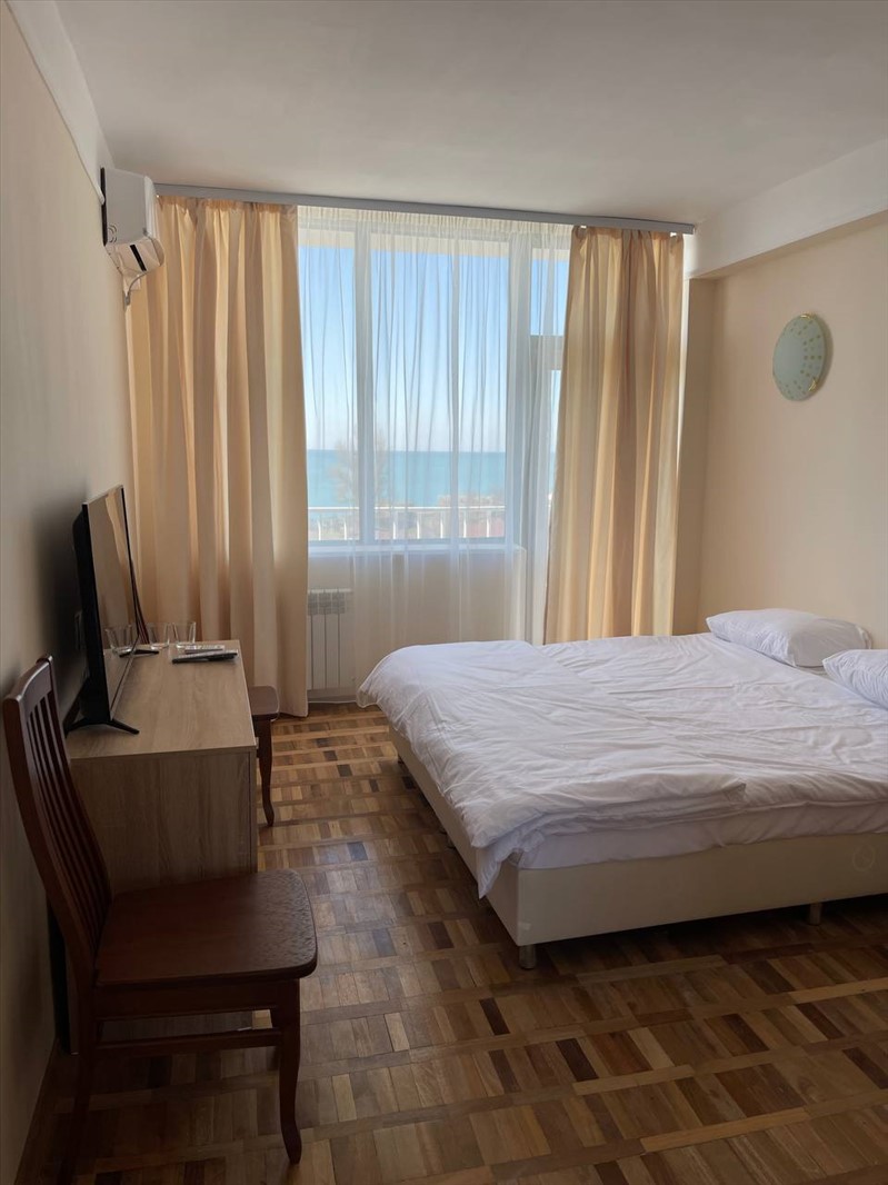 Пляж: городской, мелко-галечный в 100м от корпуса. Пляж оборудован: шезлонгами, зонтиками, кабинками для переодеваний, теневыми навесами.