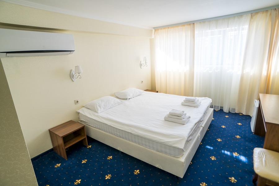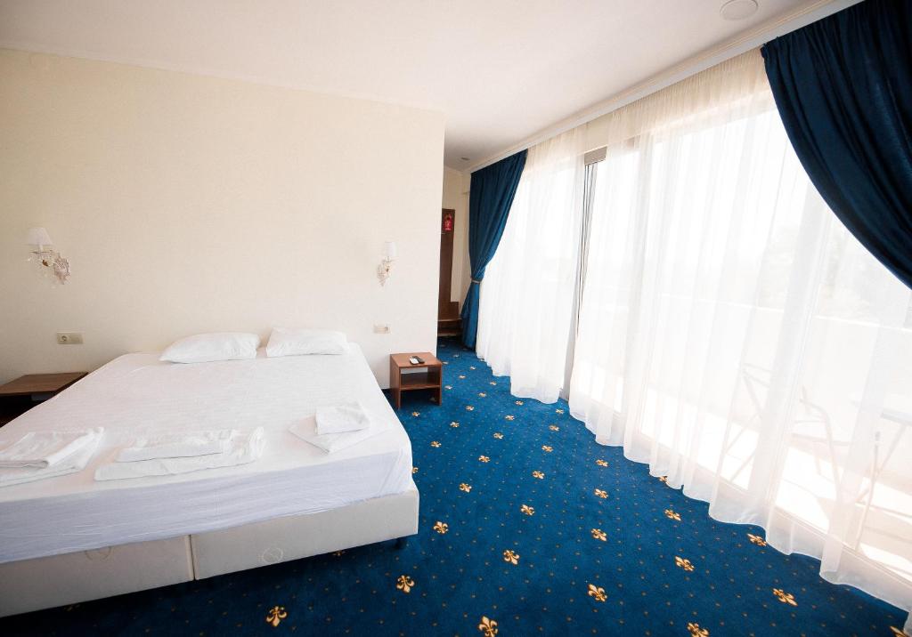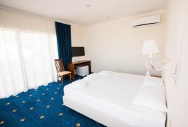- 2-местный 1-комнатный номер Стандарт (TWIN/DBL). Площадь: 20 кв.м. В номере: две односпальные кровати или одна двуспальная кровать, кондиционер, телевизор, холодильник, санузел с душем, фен, набор мини косметики. Балкон с видом на горы или море/бассейн. Доп. место – еврораскладушка.