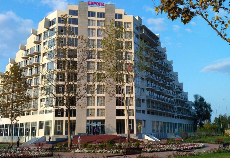 Современна гостиница «Европа» расположен в районе Новой Гагры в шаговой доступности от всей развлекательной инфраструктуры курорта. Рядом — рестораны, кафе, дискотеки, набережная и гагрский аквапарк. До аэропорта Сочи — около 33 километров. Капитальный ремонт был произведен в 2020 году.