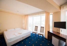 - 2-местный 1-комнатный Люкс-Студио. Площадь: 35 кв.м. В номере: одна двуспальная кровать, диван, кондиционер, телевизор, холодильник, санузел с душем, фен, набор мини косметики. Номер с большим балконом.