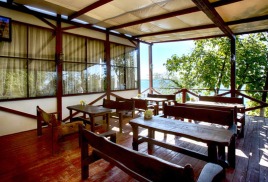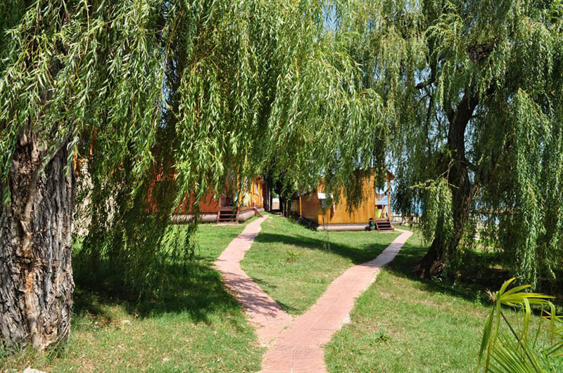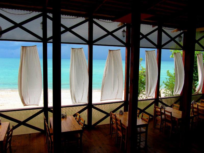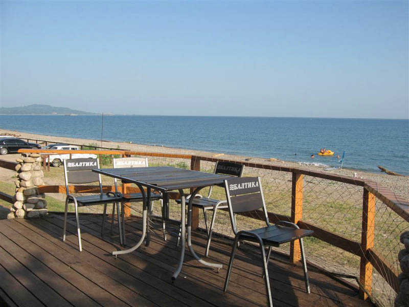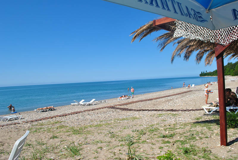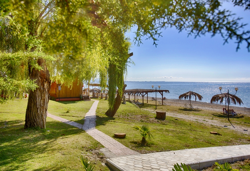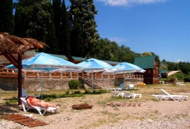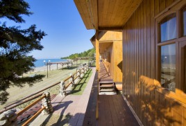 Пляж: собственный охраняемый пляж, оборудован лежаками и небольшими столиками, зонтики от солнца, специальные деревянные трапики по пляжу, до моря несколько метров от номера.