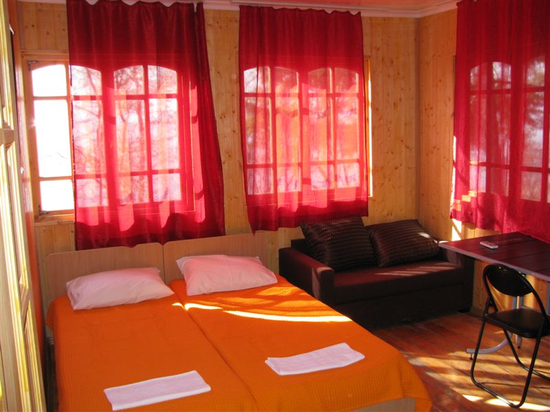 Размещение: Три 1-этажных деревянных корпуса, два 2-этажных коттеджа и новый корпус. Построен в 2008 г. Косметический ремонт: новый корпус в 2016-2017 гг., 4-местные домики - 2017 г., деревянные корпуса - 2014 г.