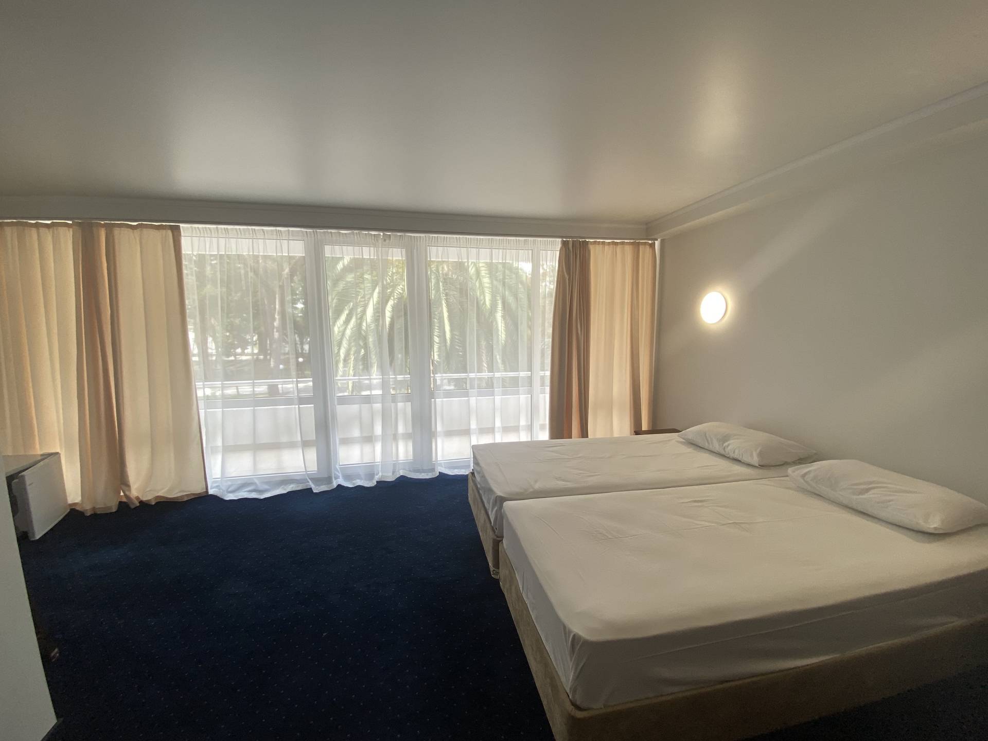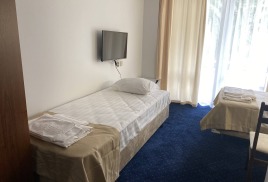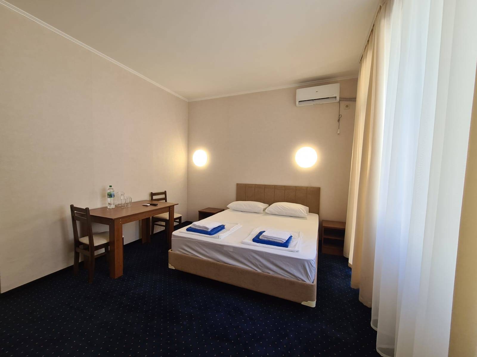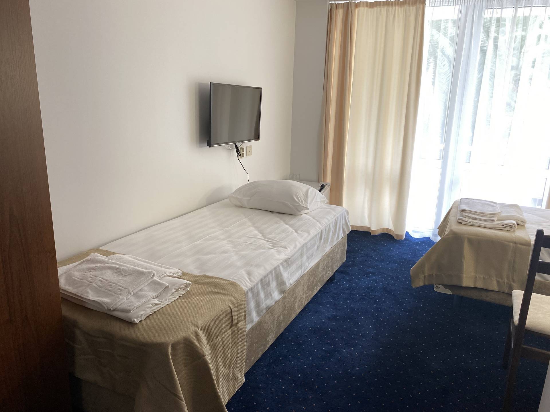 - 2-местный Стандарт. Площадь: 18-20 кв. м. В номере: две односпальные кровати или одна двуспальная кровать, телевизор, холодильник, кондиционер, санузел с душем, балкон. Дополнительное место - еврораскладушка.
