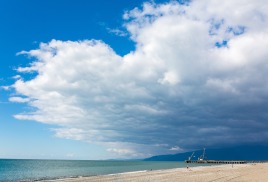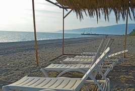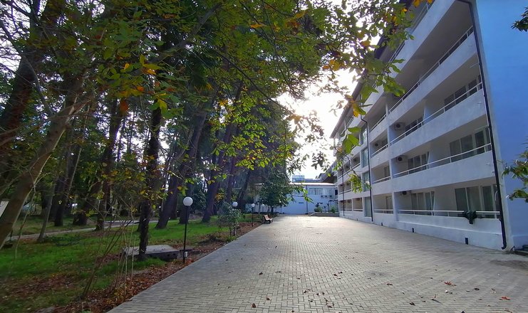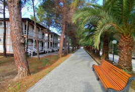 Пляж: галечный оборудованный, в 150 м от корпусов.