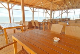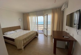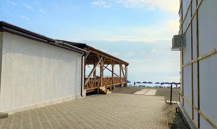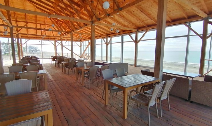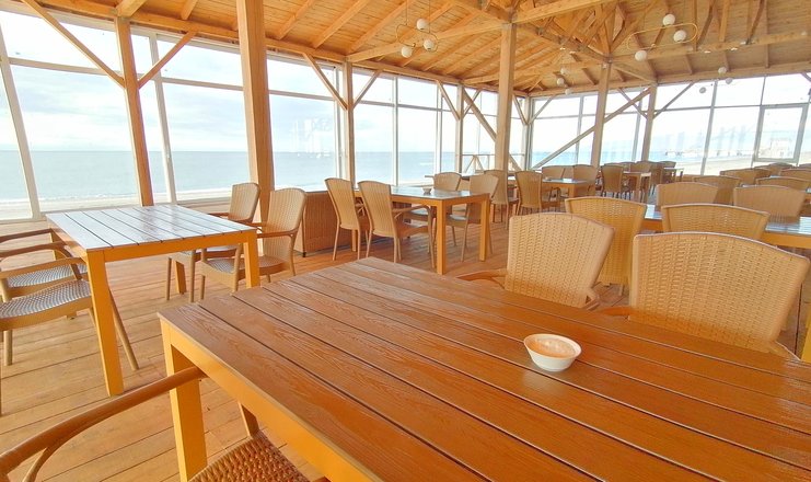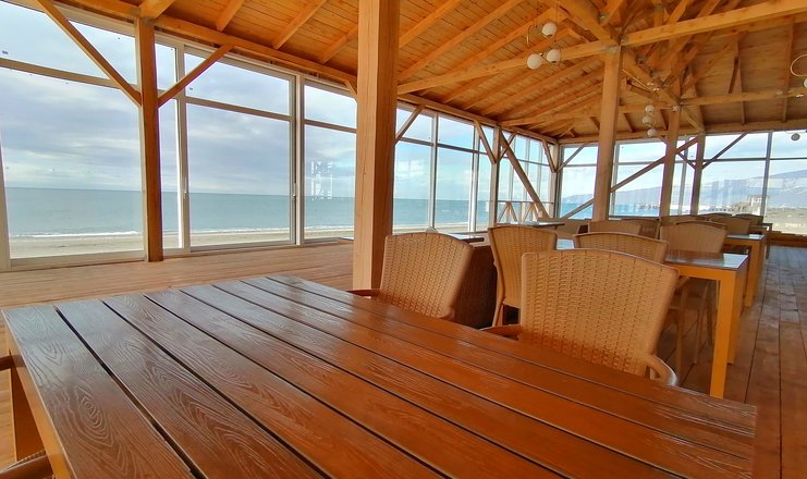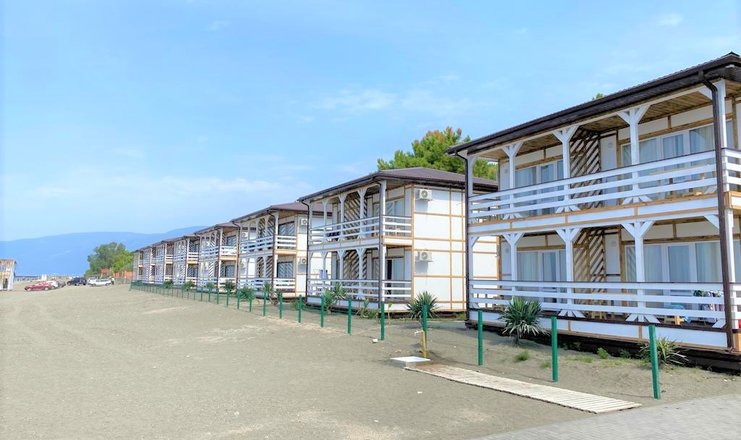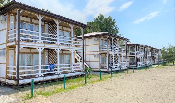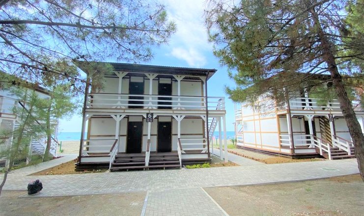- 2-местный 3-комнатный коттедж «Морская». Площадь: 50 кв. м. В номере: две спальни с двумя раздельными кроватями или одной двуспальной кровать, гостиная с мягкой мебелью, телевизор, холодильник, кондиционер, санузел с душем, веранда. Дополнительное место - диван.