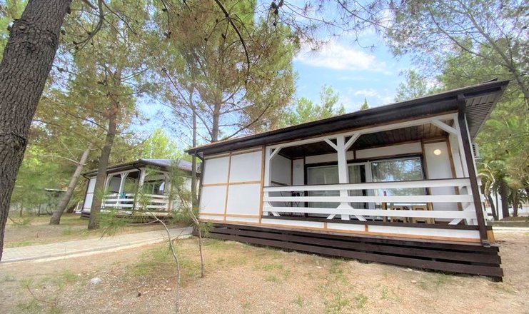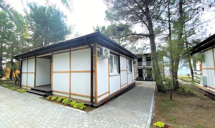 - 2-местный 3-комнатный коттедж «Вилла». Площадь: 45 кв. м. В номере: две спальни с двумя раздельными кроватями или одной двуспальной кровать, гостиная с мягкой мебелью, телевизор, холодильник, кондиционер, санузел с душем, веранда. Дополнительное место - диван.
