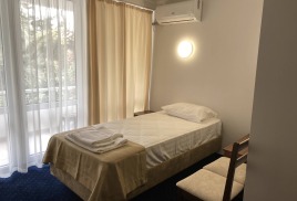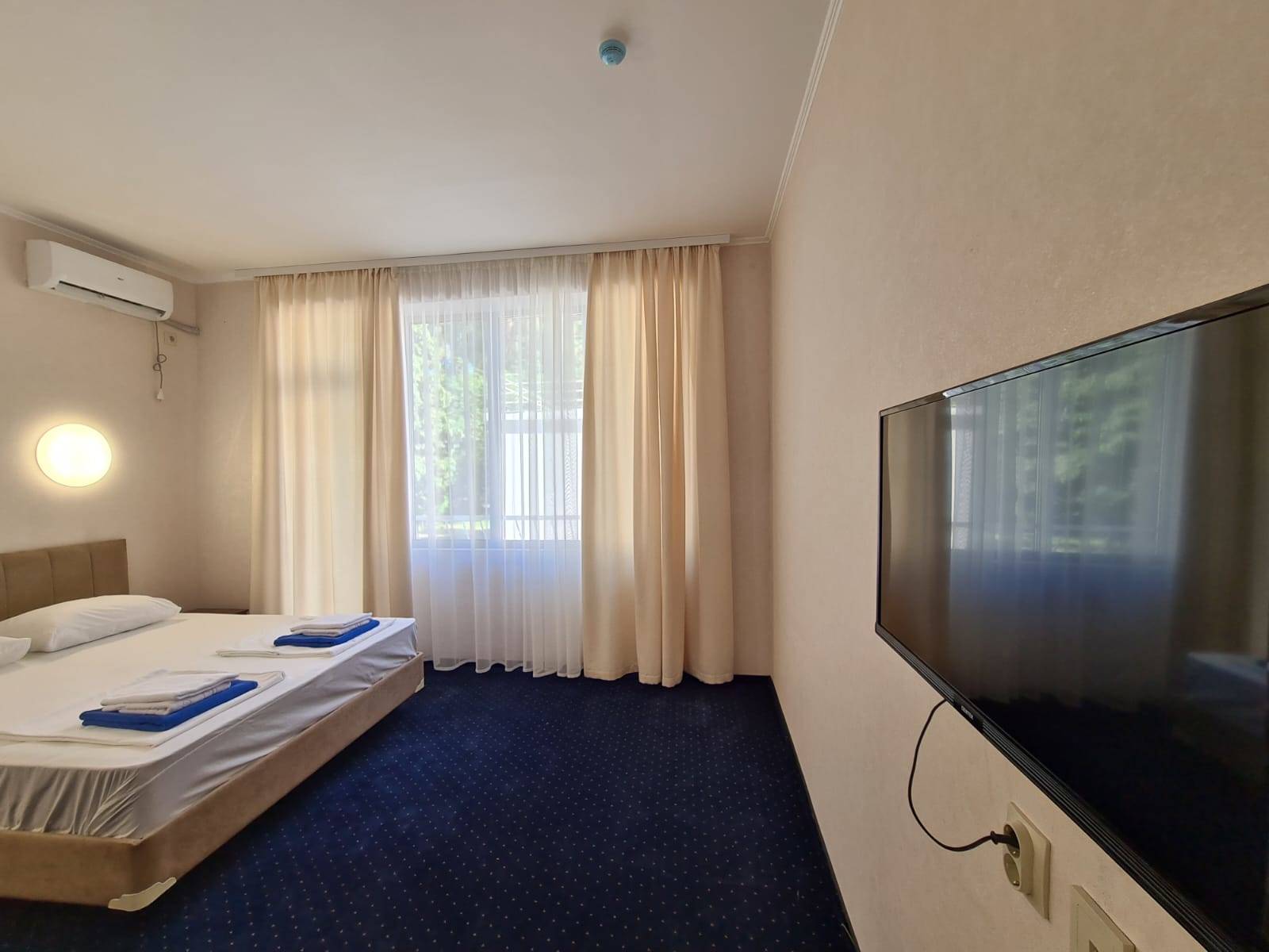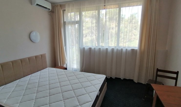 - 2-местный Стандарт. Площадь: 20 кв. м. В номере: двуспальная кровать, телевизор, холодильник, кондиционер, санузел с душем, веранда. Дополнительное место - еврораскладушка.