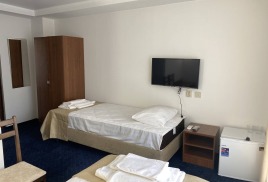 - 2-местный Эконом. Площадь: 10-12 кв. м. В номере: одна двуспальная кровать, телевизор, холодильник, кондиционер, санузел с душем. Номер без балкона. Дополнительное место не предусмотрено.