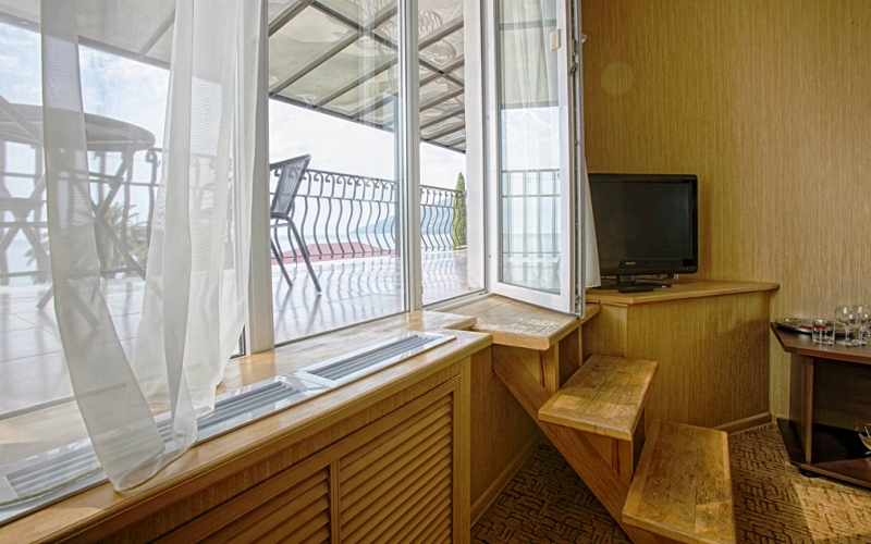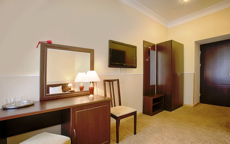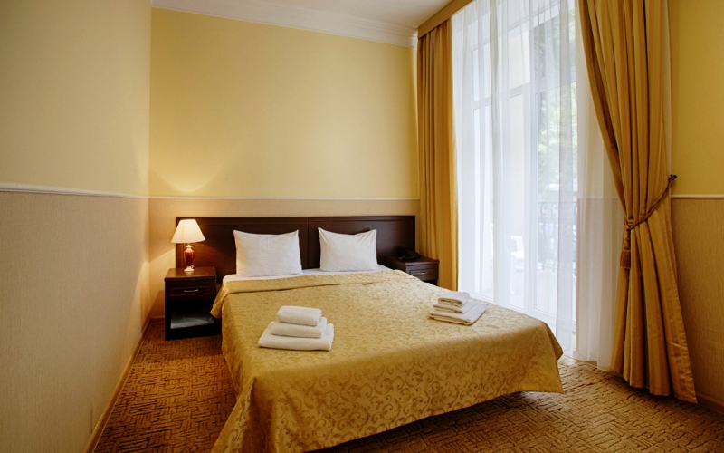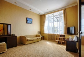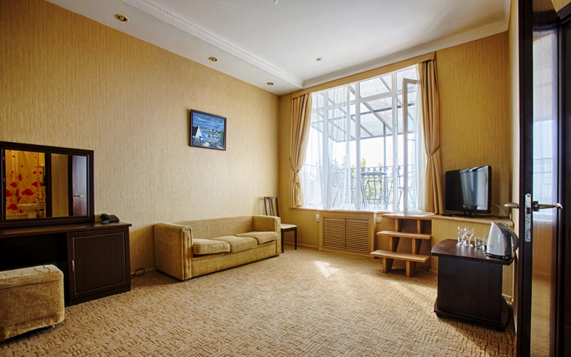 - 2-местный 2-комнатный полулюкс (макс. 2+2 чел., 30 кв. м, телевизор, кондиционер, ванна, туалет, холодильник, балкон, мягкая мебель, 2-спальная кровать).