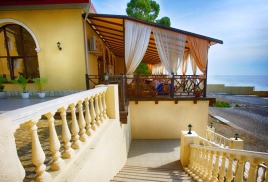 Пляж: собственный песчано-галечный оборудованный (лежаки и зонты), в 20 м от корпуса.