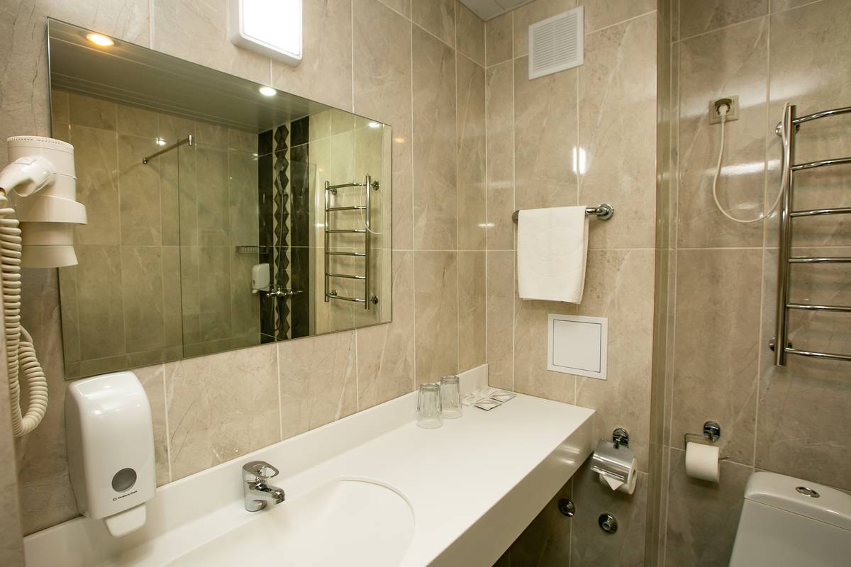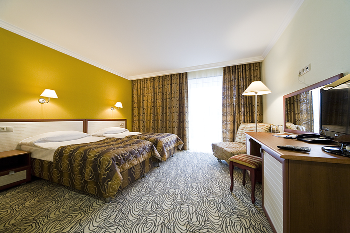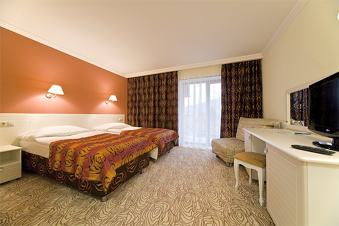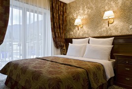 - 2-местный 1-комнатный Стандарт с видом на горы. Площадь: 19 кв.м. В номере: две односпальные кровати или одна двуспальная кровать, телевизор, холодильник, сплит-система, санузел с душем, фен. Балкон с видом на горы. Доп. место - еврораскладушка.