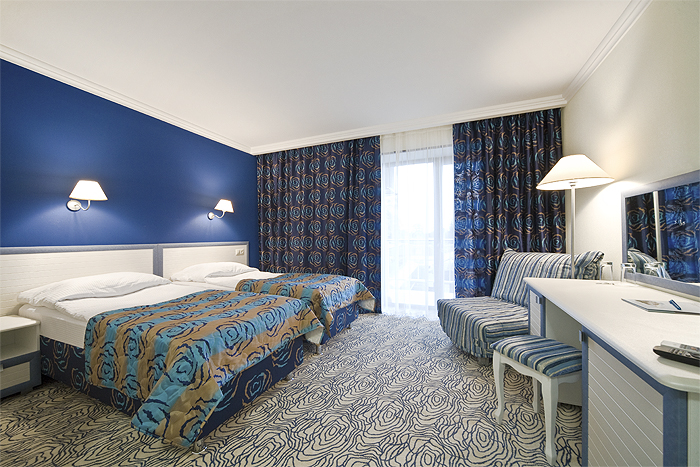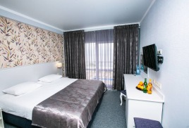 - 2-местный1-комнатный Стандарт ПК (без витража). Площадь: 24 кв.м. В номере: две односпальные кровати или одна двуспальная кровать, телевизор, холодильник, сплит-система, санузел с душем, фен, балкон с боковым видом на море. Доп. место - еврораскладушка.