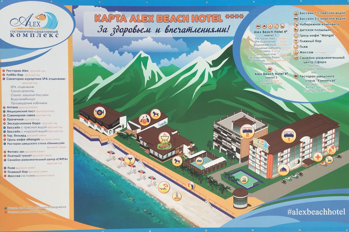 Четырехзвездочный отель «Алекс Резорт & Спа» расположен на первой береговой линии популярного абхазского курорта Гагры. Рядом остановки общественного транспорта, кафе, магазины. В шаговой доступности находится Гагрский аквапарк, единственный аквапарк в республике, до главных историко-культурных достопримечательностей Старой Гагры можно доехать за 5 - 7 минут. Международный аэропорт Адлера распложен в 24 километрах от гостиницы, дорога до границы займет около получаса.