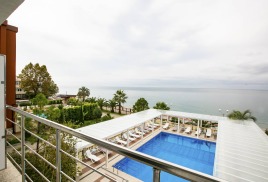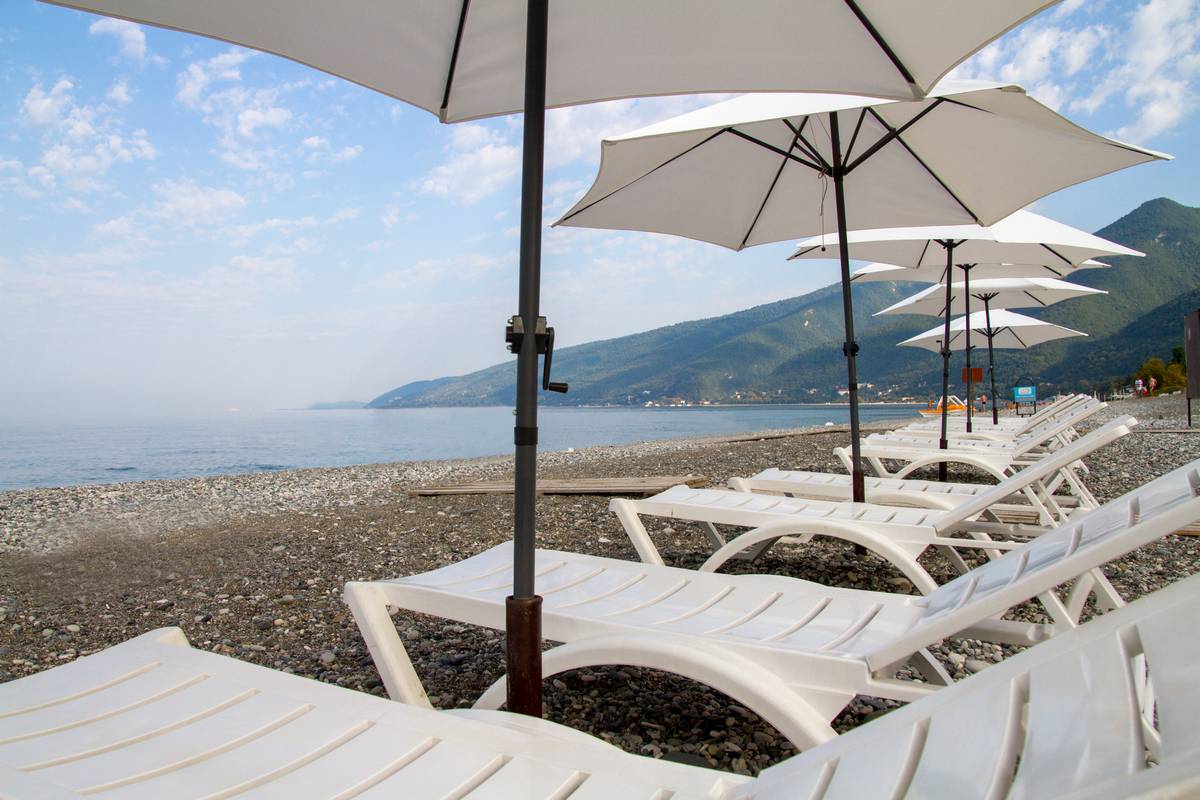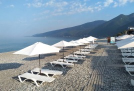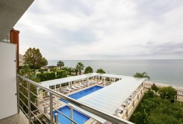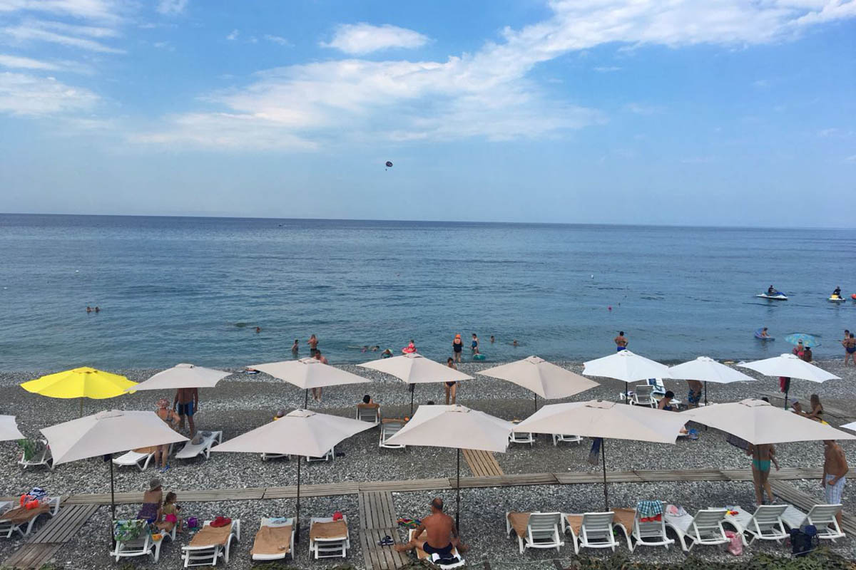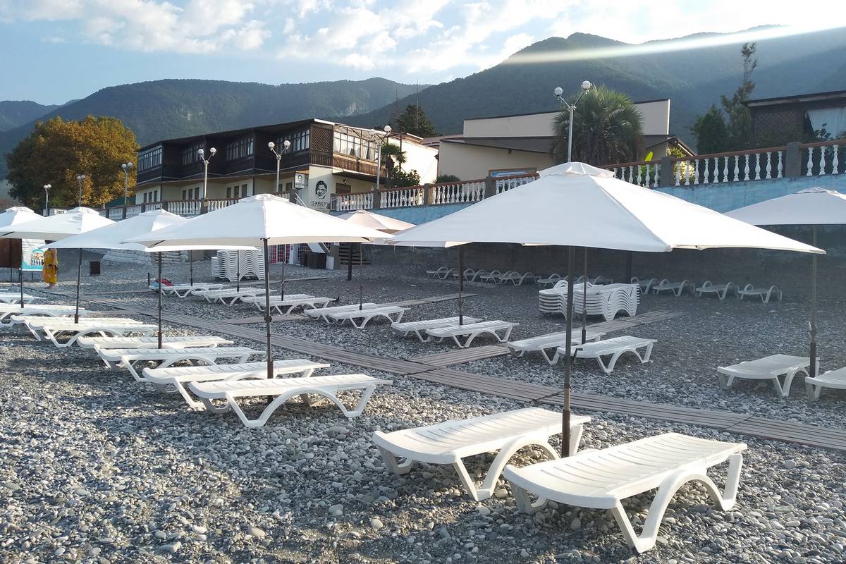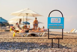 Пляж: собственный песчано-галечный в 50м от корпусов, оборудованный зонтами, лежаками и аэрарий (бесплатно).