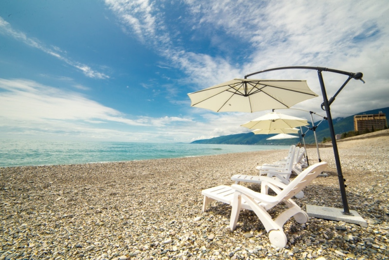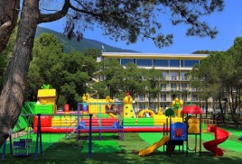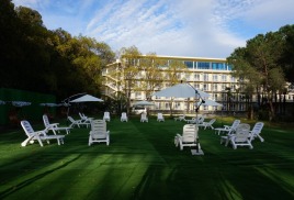 Пляж: собственный песчано-галечный, в 70 метрах от отеля, оборудованный (лежаки, зонты, пляжные полотенца, напитки), общей площадью 1000 м2.