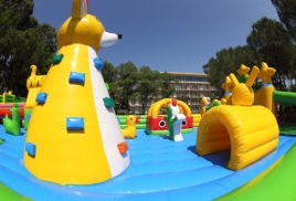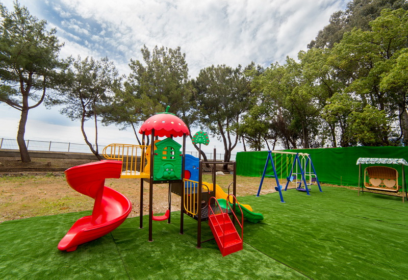 детская площадка 450 м2 с игровым городком и шезлонгами
