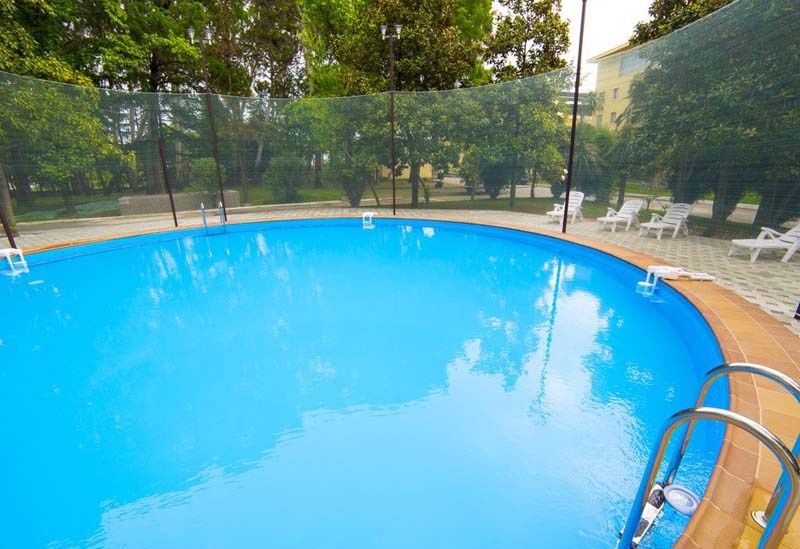 открытый бассейн (12 м в диаметре, 0.9-1.2 м глубиной; фильтруемый, хлорируемый, обогреваемый, оборудованный (лежаки, зонты, пляжные полотенца, напитки, спасатели))
