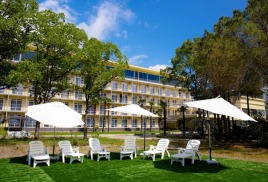 Новый отель «Wellness Park Hotel» All Inclusive 5* расположен в Новой Гагре на берегу моря на закрытой охраняемой территории дендропарка с экзотическими деревьями общей площадью 3 гектара. Это единственный отель в Абхазии, работающий по системе «Всё включено» и ориентированный на семейный отдых. 5-ти этажный корпус отеля снабжен системой видеонаблюдения, лифтом «OTIS», во входных группах и номерах гостиницы установлена электронная замковая система.