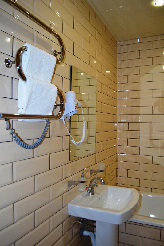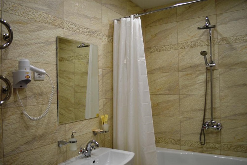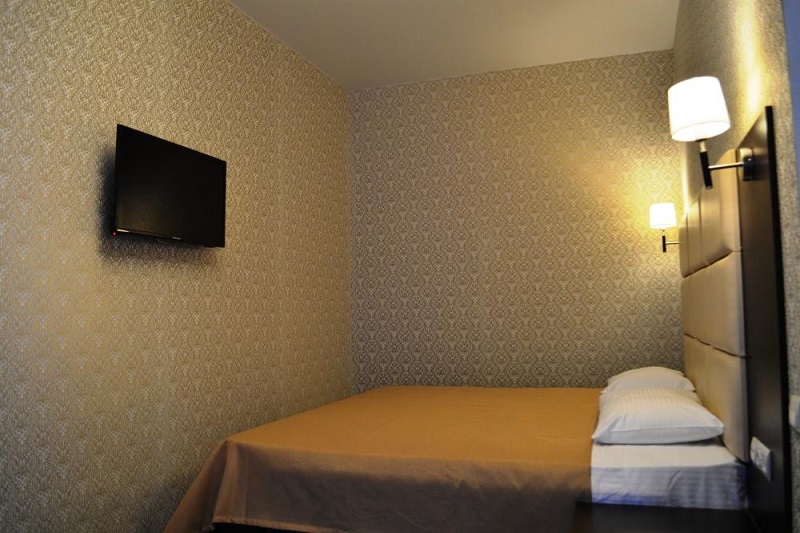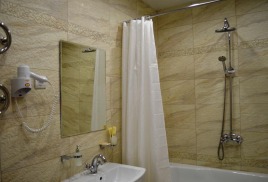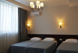 - 2-местный 1-комнатный Стандарт-комфорт без балкона. Площадь: 18 кв.м. В номере: две односпальные кровати или одна двуспальная кровать, кондиционер, телевизор, холодильник, чайник с набором посуды, санузел с душем, фен, халат и тапочки, сейф. Доп. место - кресло-кровать.