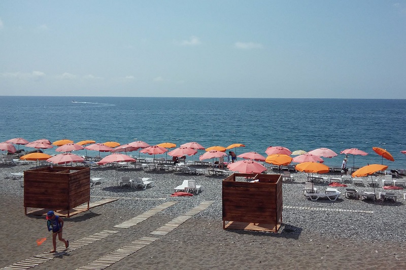 Пляж: собственный, мелко-галечный в 20 м. от корпуса. Пляж оборудован: шезлонгами, зонтиками. Для отдыхающих предоставляются пляжные полотенца.