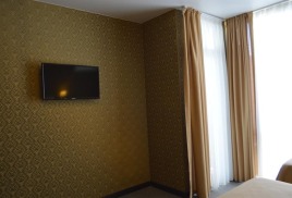 - 2-местный 1-комнатный Стандарт-комфрт с балконом. Площадь: 18 кв.м. В номере: две односпальные кровати или одна двуспальная кровать, кондиционер, телевизор, холодильник, чайник с набором посуды, санузел с душем, фен, халат и тапочки, сейф, балкон. Доп. место - кресло-кровать.