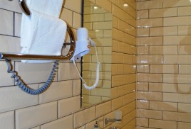 - 2-местный 1-комнатный Стандарт без балкона. Площадь: 16 кв.м. В номере: две односпальные кровати или одна двуспальная кровать, кондиционер, телевизор, холодильник, чайник с набором посуды, санузел с душем, фен, халат и тапочки, сейф. Доп. место не устанавливается.