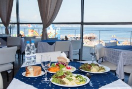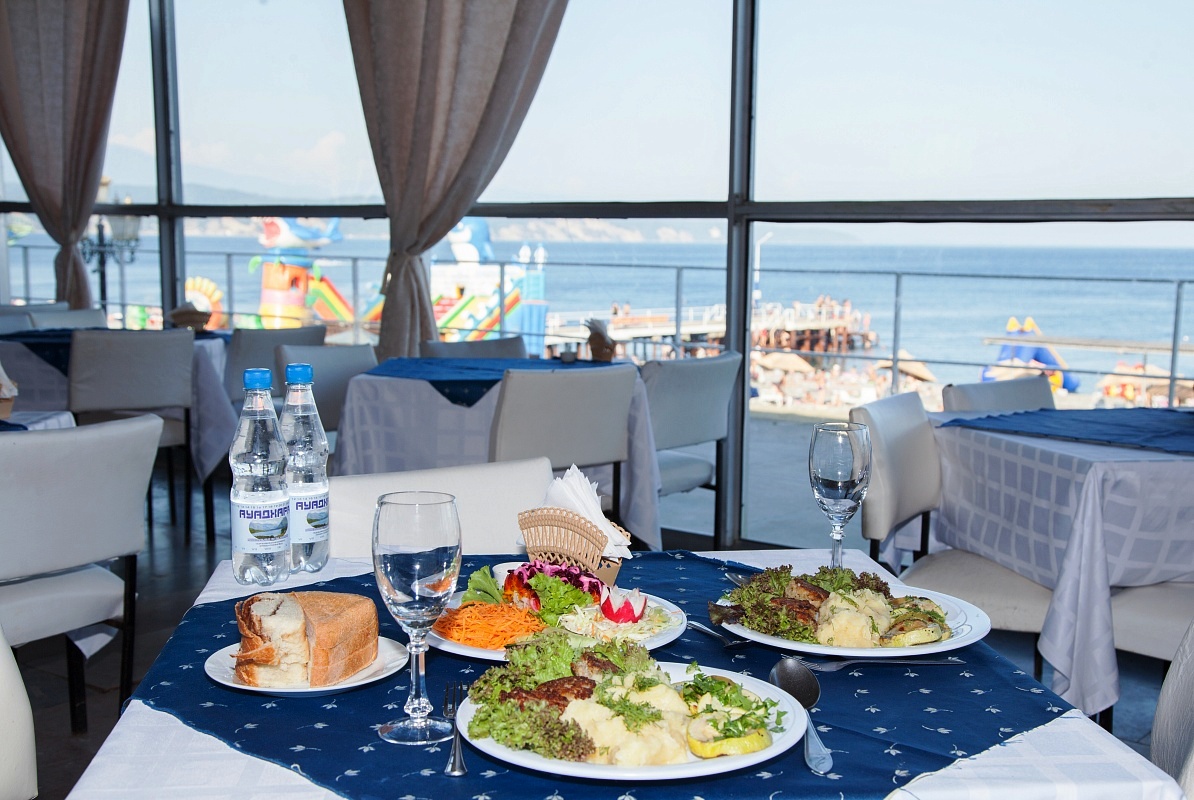 Пляж: галечный оборудованный, в 50 м от корпусов. Пляж оборудован лежаками и зонтами. За дополнительную плату: банан, водные лыжи, скутер, катамаран и прочее. На пляже есть небольшой детский городок с батутами.