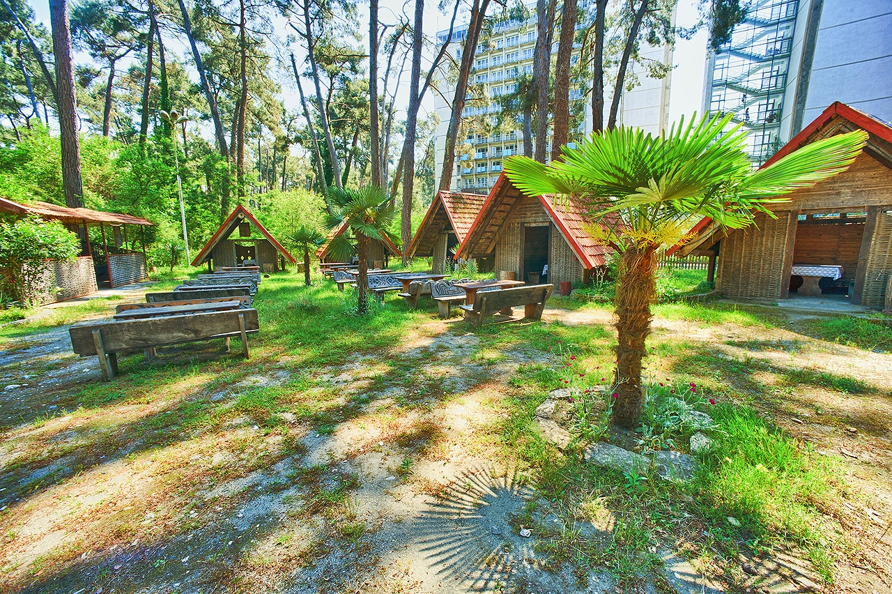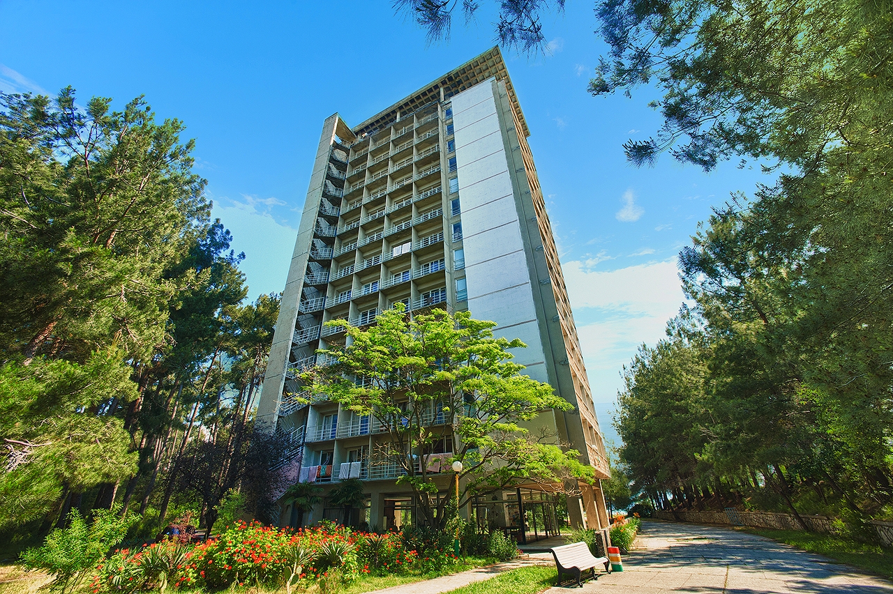 Объединение пансионатов «Курорт Пицунда» находятся в центре курорта Пицунда на берегу моря в окружении сосновой рощи, которая создает целебный микроклимат и дарит прохладу даже в летний зной. Побережье Пансионата расположено в бухте, морская вода здесь чистая и спокойная. Утопающие в зелени корпуса Пансионата «Курорт Пицунда» выстроились вдоль края знаменитой заповедной сосновой рощи. Именно ее целебным свойствам Пансионат обязаны своей популярностью.