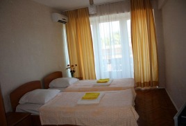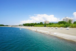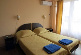 Пляж: песчано-галечный собственный оборудованный, в 50 м от корпуса. На пляже: лежаки, зонты, душ. За дополнительную плату: банан, лыжи, скутер, катамаран и другое.
