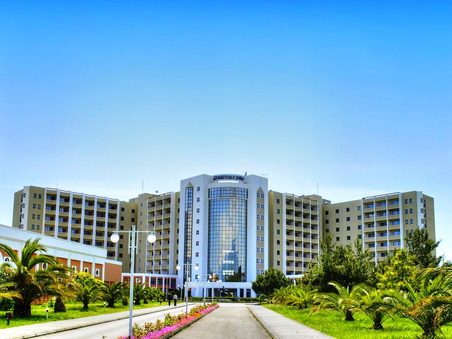 Номерной фонд: 10-ти этажный корпус с лифтом на 750 мест.