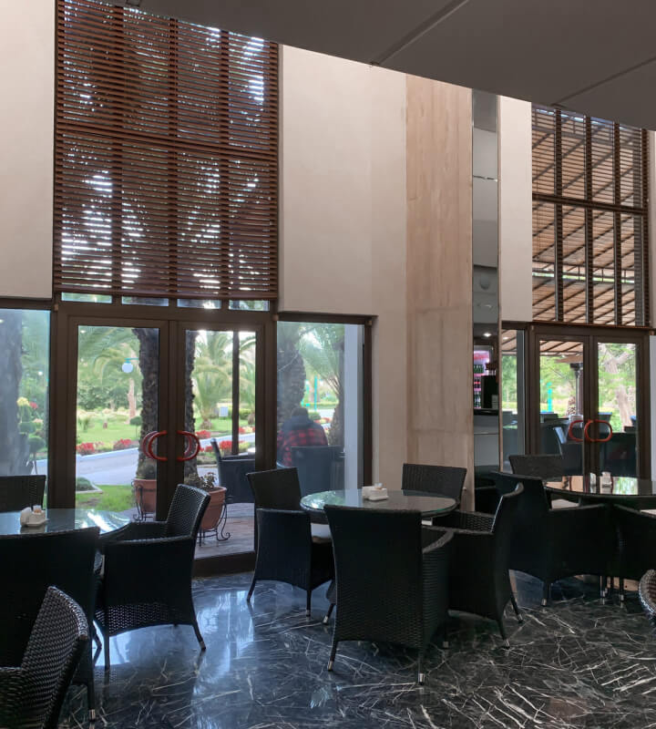 - Крытый подогреваемый бассейн с морской водой, делится на две зоны для взрослых и детей. Размер: 25×12м, работает: 07:00—20:00 ежедневно