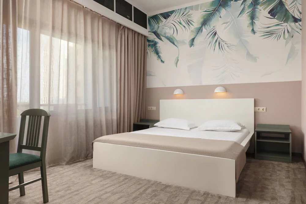 - 2-местный стандарт.(18 кв.м.) - В номере ковровое покрытие, балкон (оснащенный столиком и креслами). одна двуспальная кровать, шкаф для одежды, сплит-система, холодильник, электрический чайник, чайная пара, телевизор с кабельным телевидением, сейф, фен, душ, туалет. Панорамный вид на море или горы. В номере категории Стандарт - максимальное размещение 2 чел.
