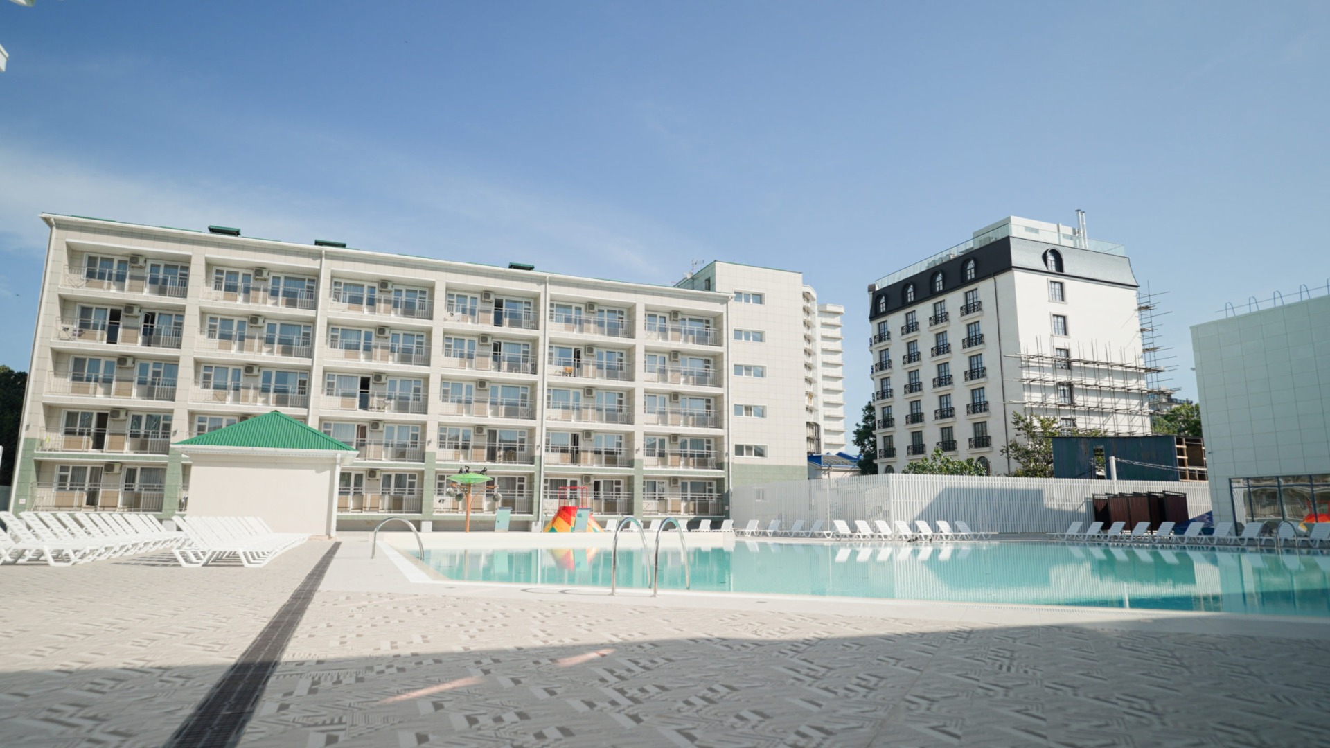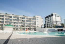 Пляж: собственный песчаный пляж расстояние 500 м, галечный 200 м. Оборудован: душевые, кабинки для переодевания, лежаки, навесы, пляжные коврики, пляжные полотенца, туалет, шезлонги.