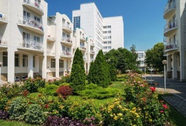 Представляет собой два здания в четыре этажа, без лифта. Постройки нового образца, комфортные, удобные коридоры и помещения для проживания. Расположены здания в непосредственной близости от лечебно-диагностического центра, чтобы попасть на процедуры, достаточно пересечь двор. Несколько сотен метров отделяет корпус от диетической столовой, что является дополнительным плюсом в системе санаторно-курортного лечения – прогулки до приема пищи и после чрезвычайно полезны для здоровья. Территория вокруг здания ухожена, красивые цветы и аккуратные композиции из кустарников добавят прогулкам прелести.