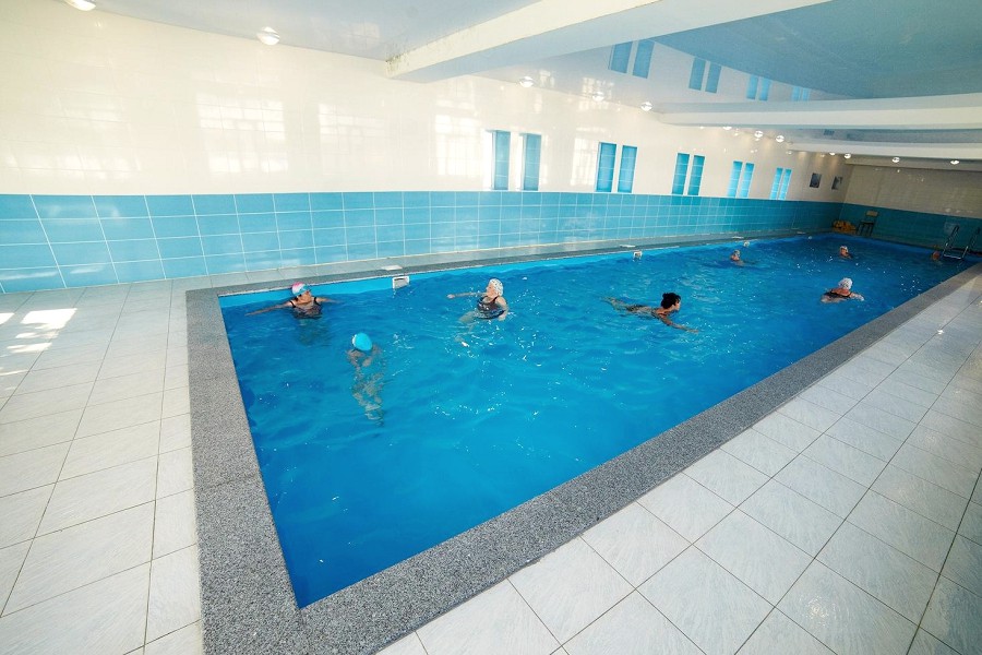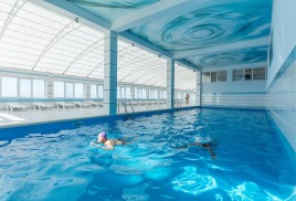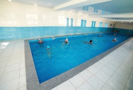 - Крытый бассейн с морской водой 40 кв.м, пользование бассейном входит в стоимость (если путевка с лечением), оплачивается дополнительно (если путевка без лечения), работает круглогодично (расположен в лечебном корпусе санатория).