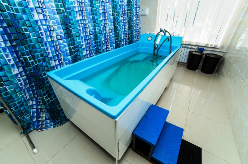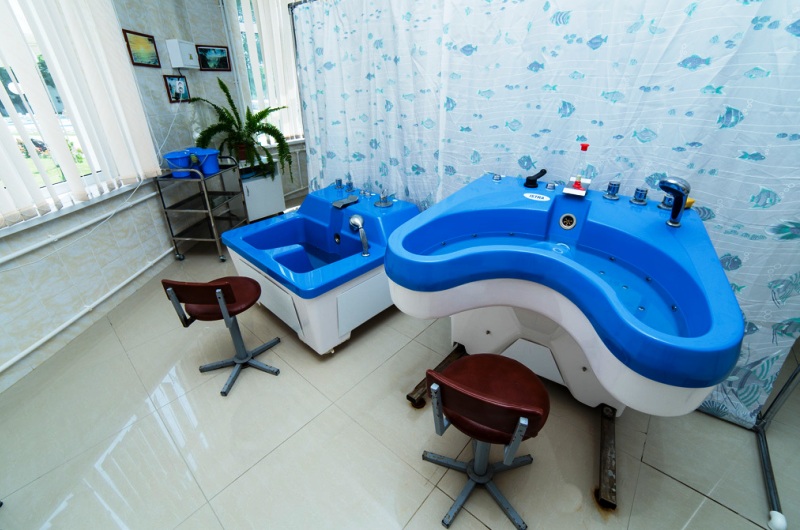 - Бальнеотерапия: Лечебные ванны: вихревые ванны, жемчужные ванны, йодобромные ванны, морские ванны, скипидарные ванны, соляные ванны, сухие углекислые ванны, хвойные ванны, шалфейные ванны, 4-х камерные ванны, 2-х камерные ванны; Лечебные души: душ «Виши», душ Шарко, подводный душ - массаж, циркулярный душ; Орошения минеральной водой.