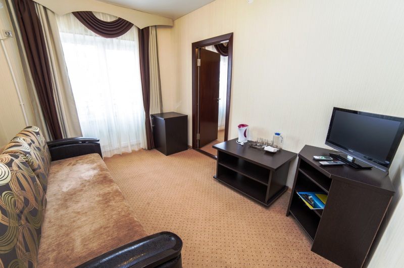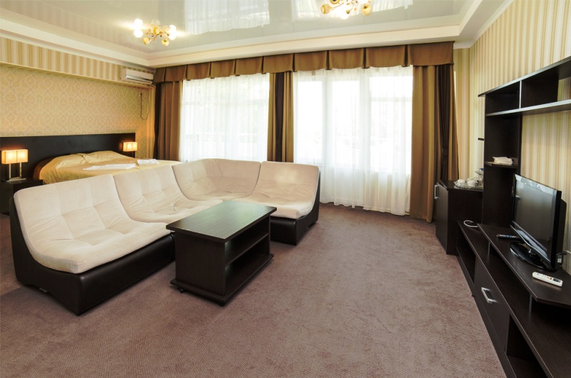 - 2-х местный 2-х комнатынй люкс без балкона. Площадь номера, кв.м: 35. Количество основных мест: 2. Количество дополнительных мест: 2 (раскладной диван).
