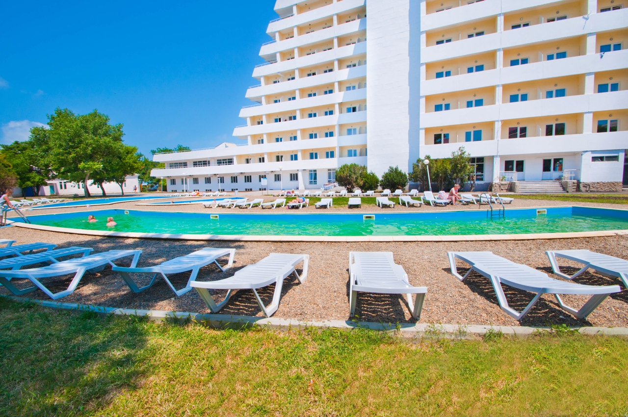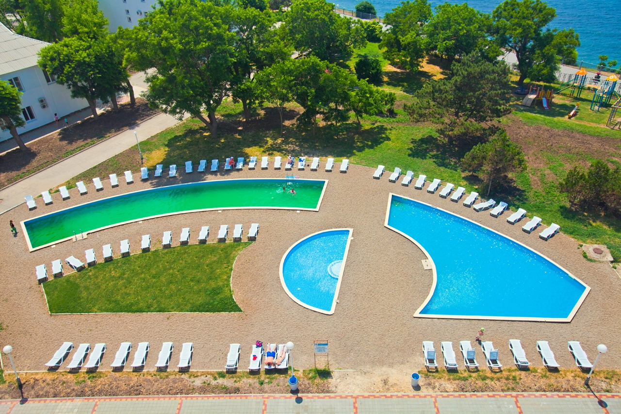 - Открытый бассейн с морской водой 100 кв.м, есть детское отделение; пользование бассейном входит в стоимость, работает сезонно: с 01.06.-30.09