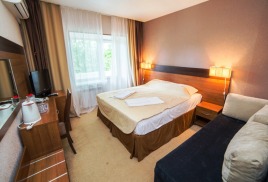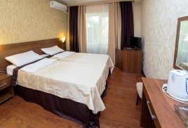 - 2-х местный номер первой категории без балкона. Площадь номера, кв.м: 18. Количество основных мест: 2. Количество дополнительных мест: 1 (односпальный диван).