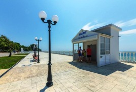 Пляж: собственный, галечный, в 70 метрах от санатория. Пляж оборудован: лежаками, легкими навесами, защищающими от палящих лучей солнца, кабинками для смены одежды, туалетными комнатами.