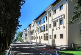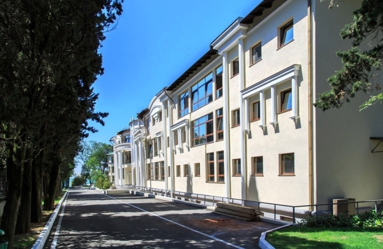 Корпус "Спальный" - 3-этажный с лифтом, до моря 50 м. Корпус соединен теплым переходом с лечебным отделением, в корпусе находятся ресторан, бассейн, библиотека, кафе и киноконцертный зал.
