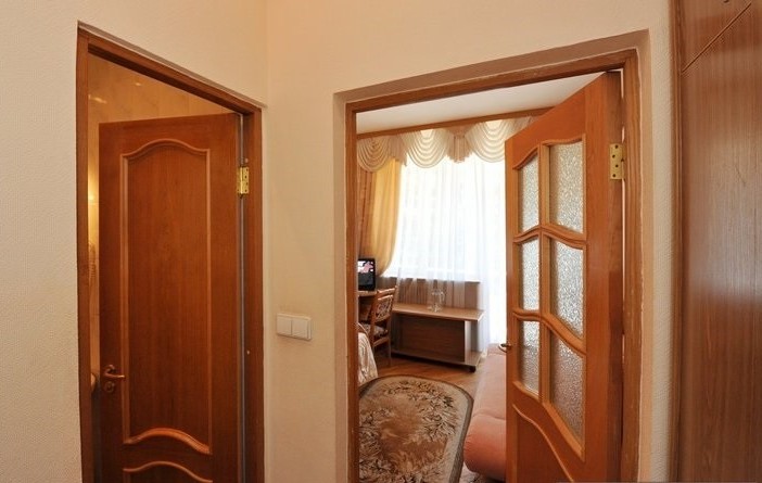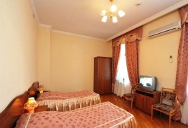 - 2-местный повышенной комфортности (коэф.0,75). 2-3 этаж. Площадь - от 22 кв.м. В номере: 2-х спальная кровать,дополнительное место -диван, столик туалетный, стулья, шкаф, пляжные полотенца, радио, сплит-система, телевизор, телефон, холодильник, чайный набор посуды, электрочайник, в некоторых номерах балкон. Санузел с душем.