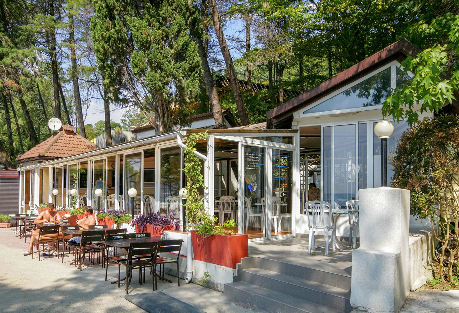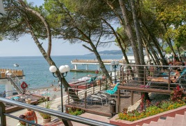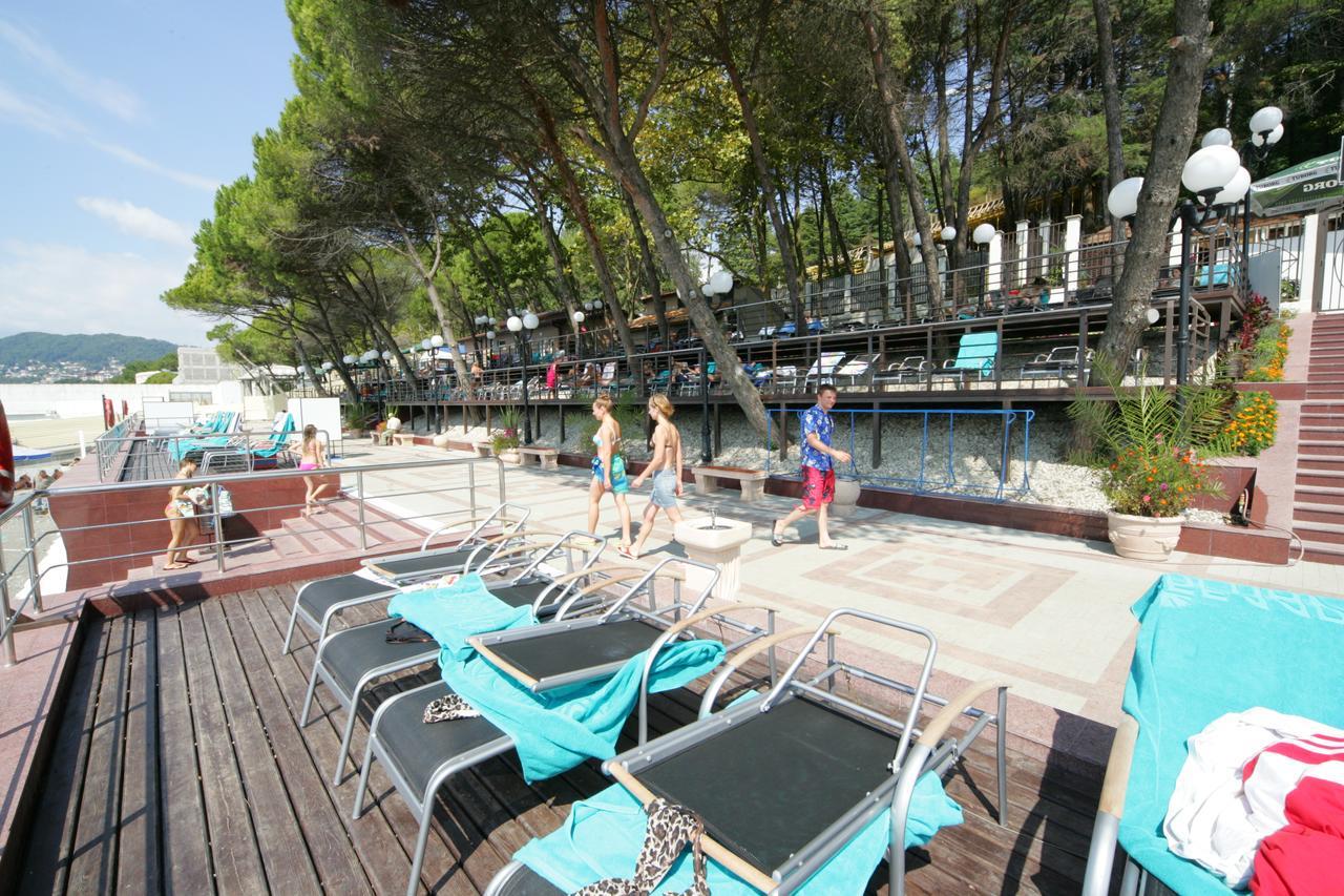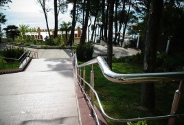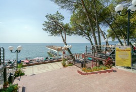 Пляж: расстояние до пляжа от жилых корпусов от 50 до 300 метров. Длина пляжа 167 м, ширина 35 м. Покрытие пляжа песочно-галечное. Теневая зона пляжа составляет более 50%, что позволяет учитывать все желания гостей санатория.