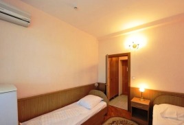 - 2-местный 1-комнатный стандартный (коэф. 0,72). 1-3 этаж. Площадь - от 14кв.м. В номере : две раздельных кровати,предусмотрено дополнительное место (еврораскладушка),кондиционер,TV,холодильник, душевая кабина , туалетные принадлежности,балкон.
