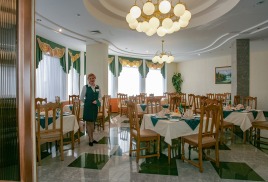 Питание: 3-разовое по система "заказного меню". Диеты: диета № 5 при хронических заболеваниях печени и желчных путей; № 10 при заболеваниях сердечно - сосудистой системы и артериальной гипертензии; № 8 при ожирении, № 9 при сахарном диабете; № 15 рациональное питание. На фоне диеты № 8 проводятся разгрузочные дни. При сочетанной патологии вносятся коррекции в меню, в отдельных случаях Вам назначат индивидуальную диету. Пища витаминизируется.